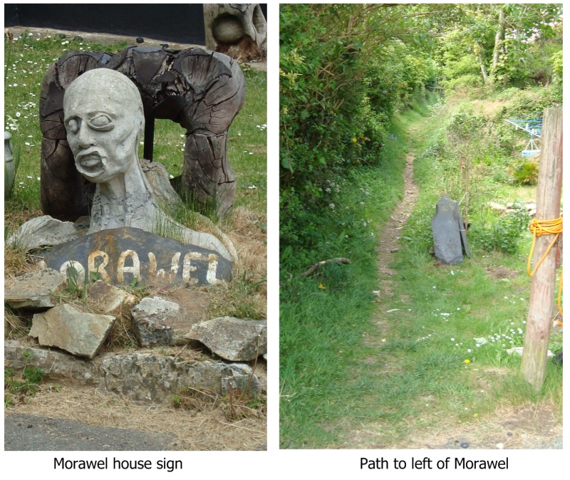 From Goodwick: There is a more direct - but steep - route up from Goodwick. The path starts to the right of the Glendower Hotel, opposite the pharmacy. At the top of the steps, follow the road uphill. Don't take the first footpath over the bridge to the left; instead follow the road up to the right past a pink house, "Pen Cwm". The look for an unsigned path to the left of "Morawel":