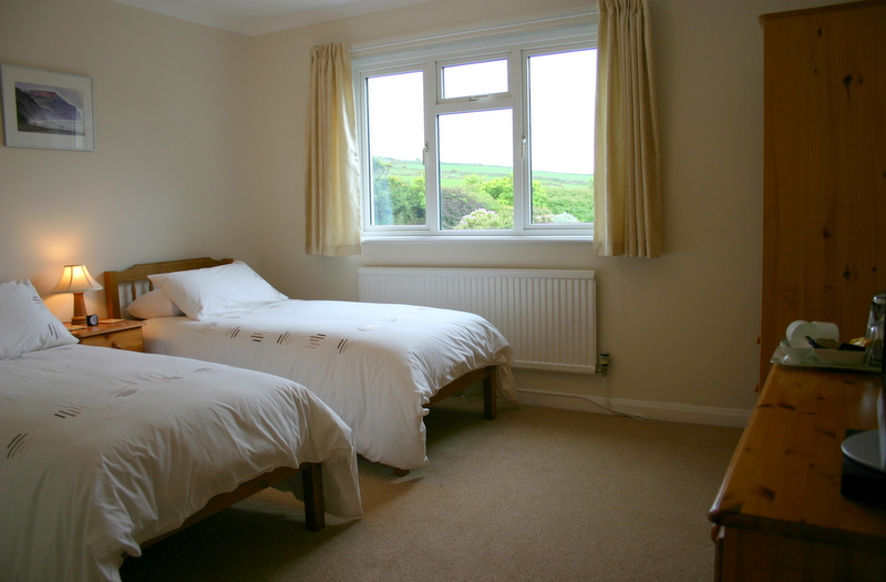 The double room faces south-east with a view up to Garwnda, and gets morning sun. The twin/double faces south-west, with a view over the fields of Strumble Head, and sun in the evening.